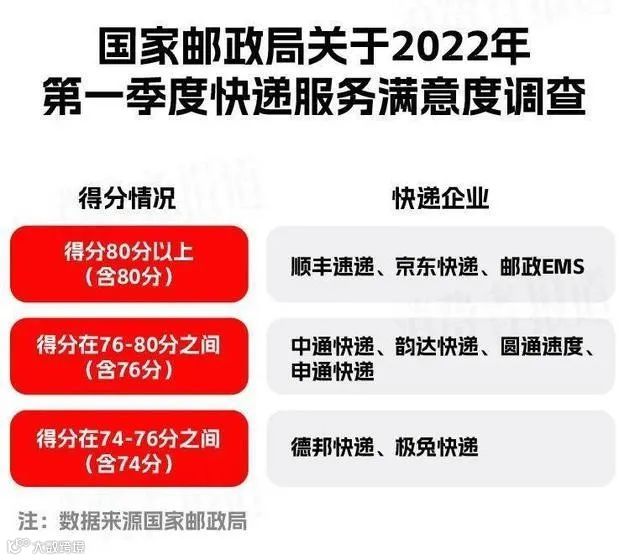国家邮政局的调查显示, 2022年第一季度,极兔快递在快递企业公众满意度上落后于“三通一达”,得分仅在74-76分之间,和德邦快递共同处于第三档。之后几个季度虽然满意度分数有所上升,但极兔的得分始终都是最后一名。