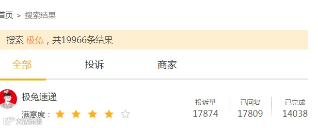 而在黑猫投诉平台上,正式进入国内市场三年不到的极兔,投诉已经近2万条。