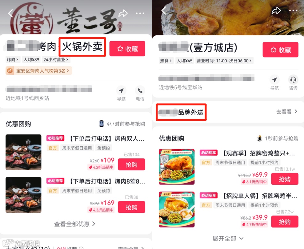 抖音的“到店团购”便是凭借这一模式站稳脚跟的。为了扶持到店团购业务,抖音上线了大批的同城直播和团购达人探店,在广告属性大于内容的短视频和直播的种草下,很多用户都会情不自禁地下单购买。