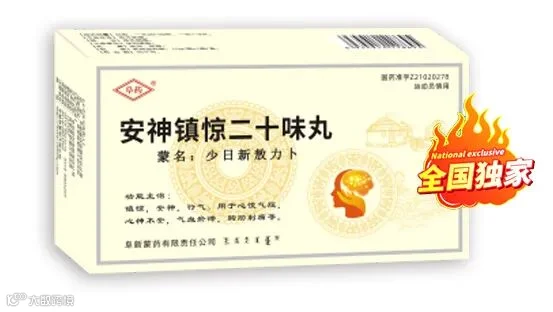 安神镇惊二十味丸:镇静、安神、行气。用于心慌气短,心神不安,气血瘀滞,胸肋刺痛等。口服,一次20-25粒,一日1-2次。