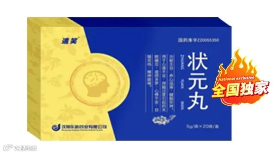 速笑·状元丸:养心滋肾,健脑安神。用于心肾不足,用脑过度引起的失眠健忘,虚烦多梦,心悸不安,目暗耳鸣,精神疲倦。