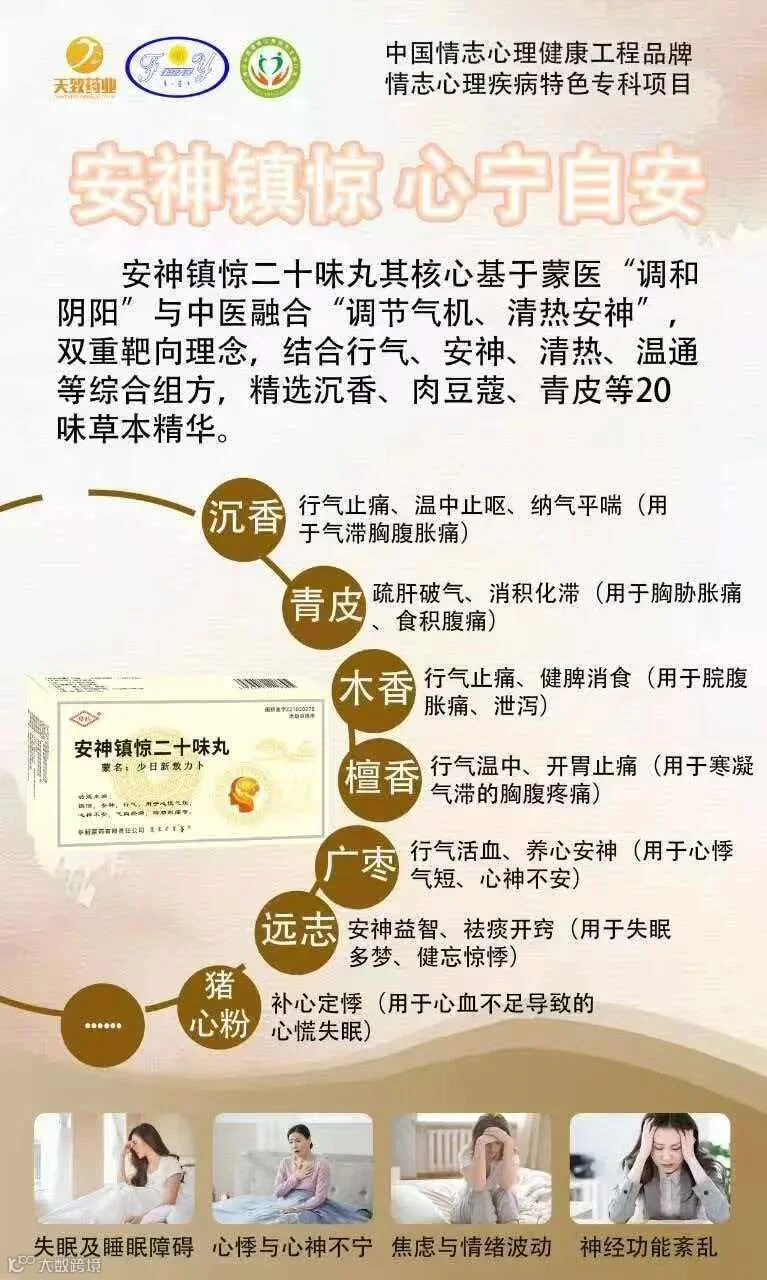 ➤焦虑的躯体化症状就用安神镇惊二十味丸