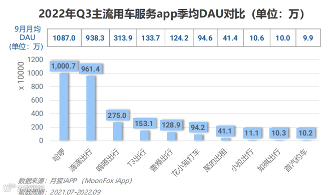 近日,移动大数据服务商极光大数据发布《2022年Q3移动互联网行业数据研究报告》显示,哈啰App活跃用户规模跃升至行业首位,其三季度App季均日活跃用户数量突破千万,达到1000.7万。