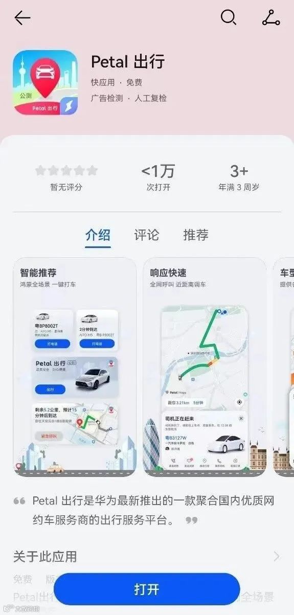 以华为打车为例,从今年9月份正式上线开始,就已经聚合首汽约车、神州专车、T3出行和阳光出行等服务商,覆盖全国近100个城市。