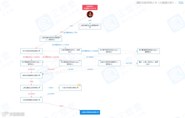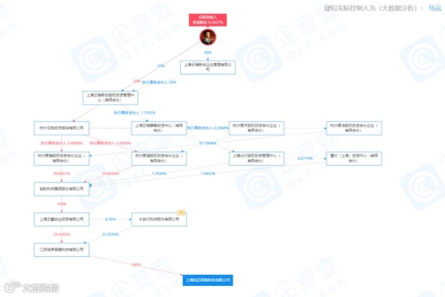 据企查查股权穿透显示,哈啰的两家主体公司上海钧丰网络科技有限公司和上海钧正网络科技有限公司的疑似实际控制人均为马云。