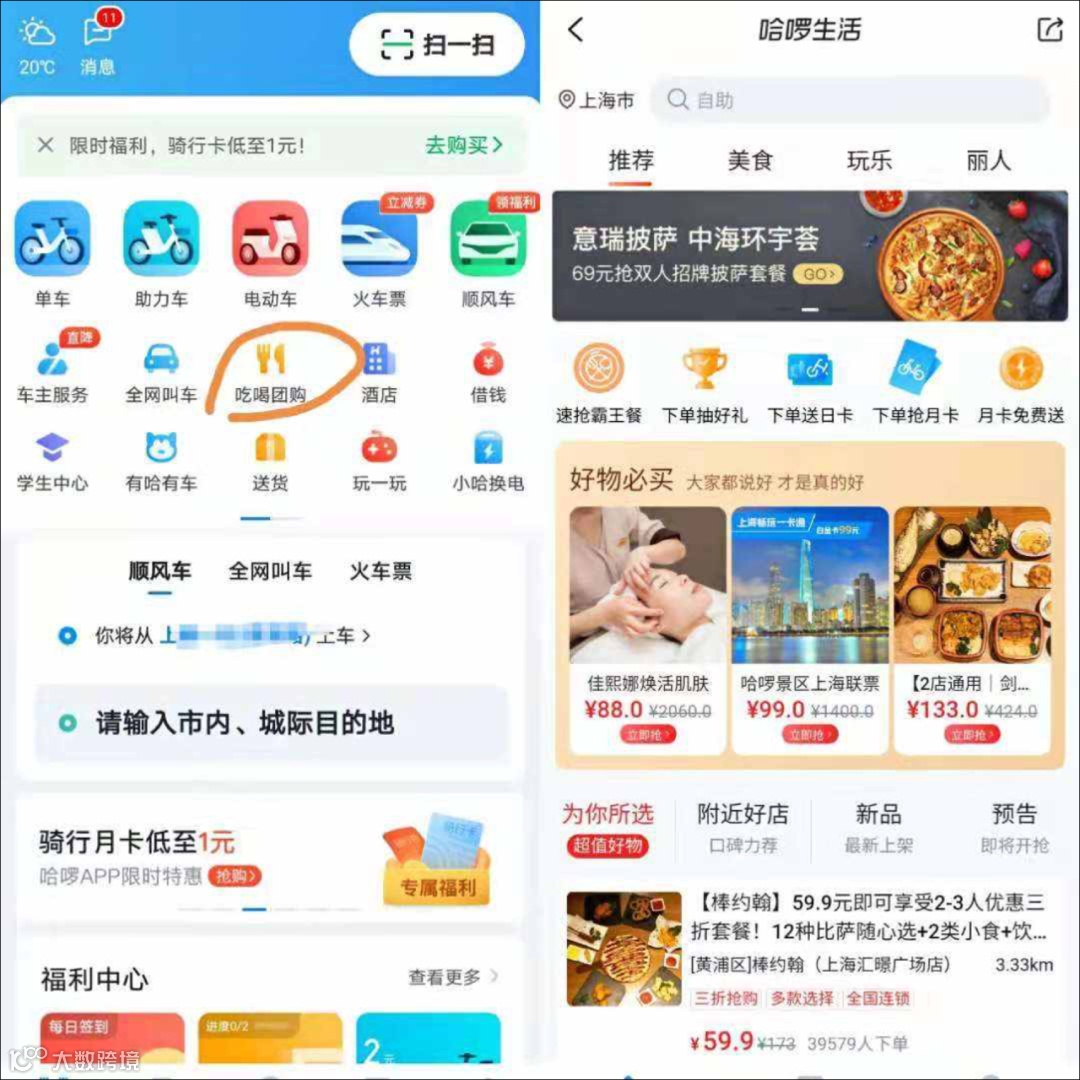 早在2020年,哈啰就开始了面向本地生活服务市场的布局,在APP上线“吃喝团购”服务入口,并逐渐将本地生活服务延伸到线下场景。哈啰还试水了“哈啰惠生活”社区团购服务,但半年后即停止服务。