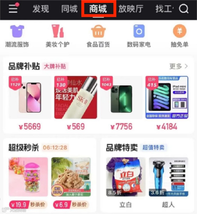 从快手的商城页面来看,包含品牌补贴、超级秒杀、品牌特卖等版块,囊括了潮流服饰、美妆个护、食品百货、以及数码家电等品类。