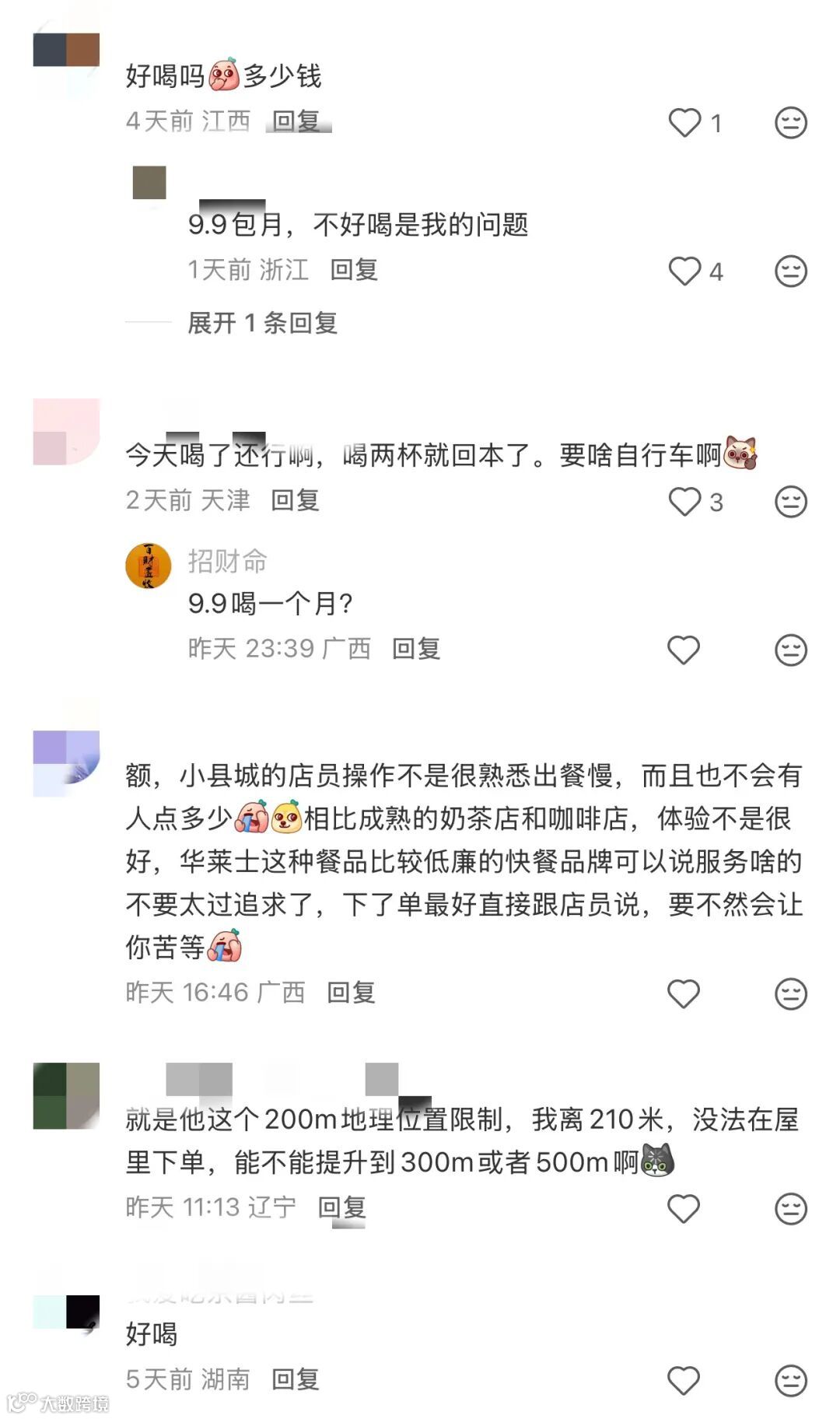 甚至有网友提出意见,能不能把在线点单的地理位置限制从200m提升到300m或者500m,因为我离门店210m就无法下单。
