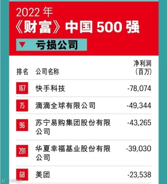 前段时间,2022年《财富》中国500强亏损公司排行榜出炉,快手以去年高达780亿元的亏损位居榜首。