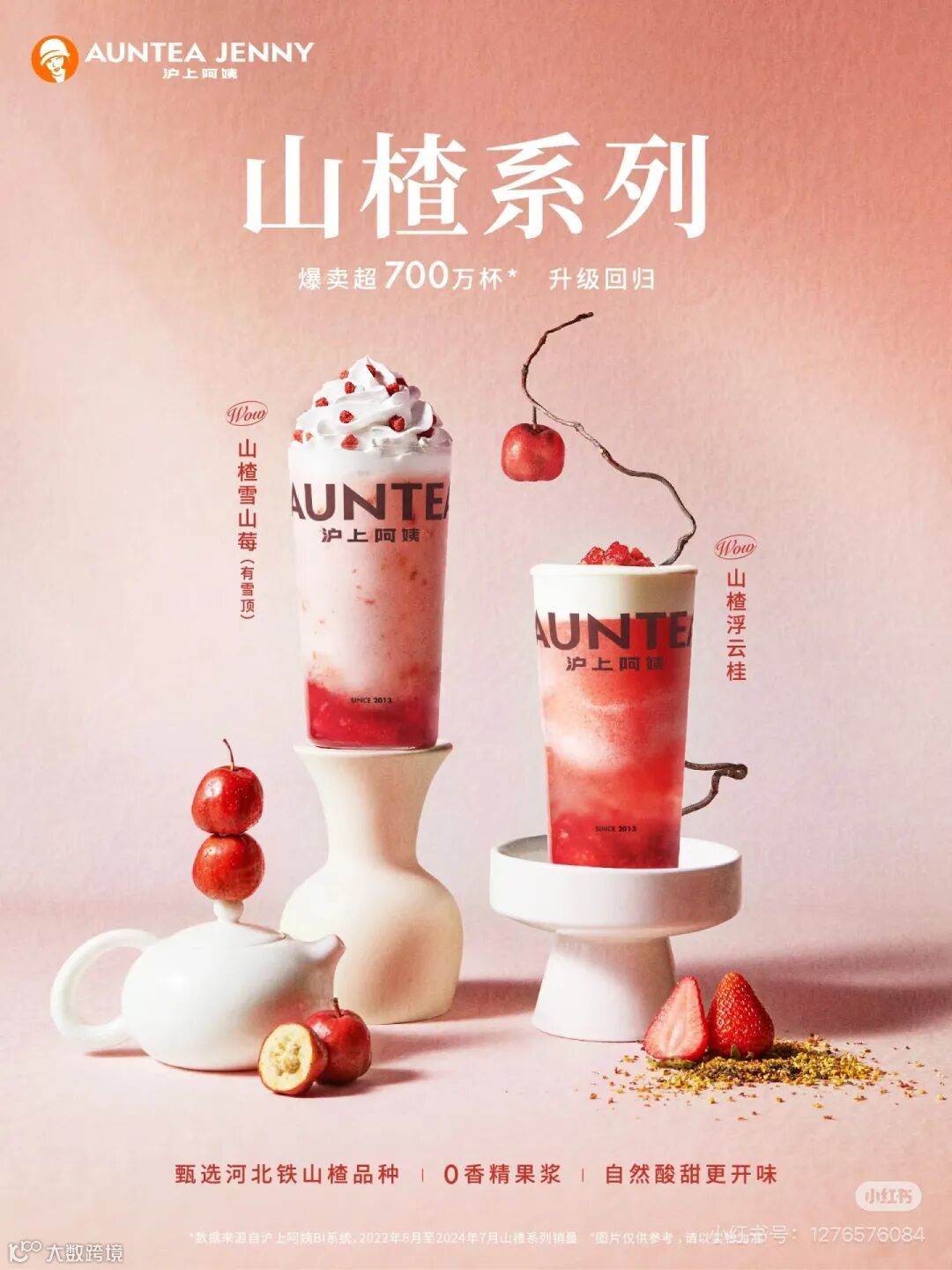 沪上阿姨也推出了山楂雪球莓、山楂莓莓等山楂+草莓主题饮品,常被消费者称作可喝的冰糖葫芦。