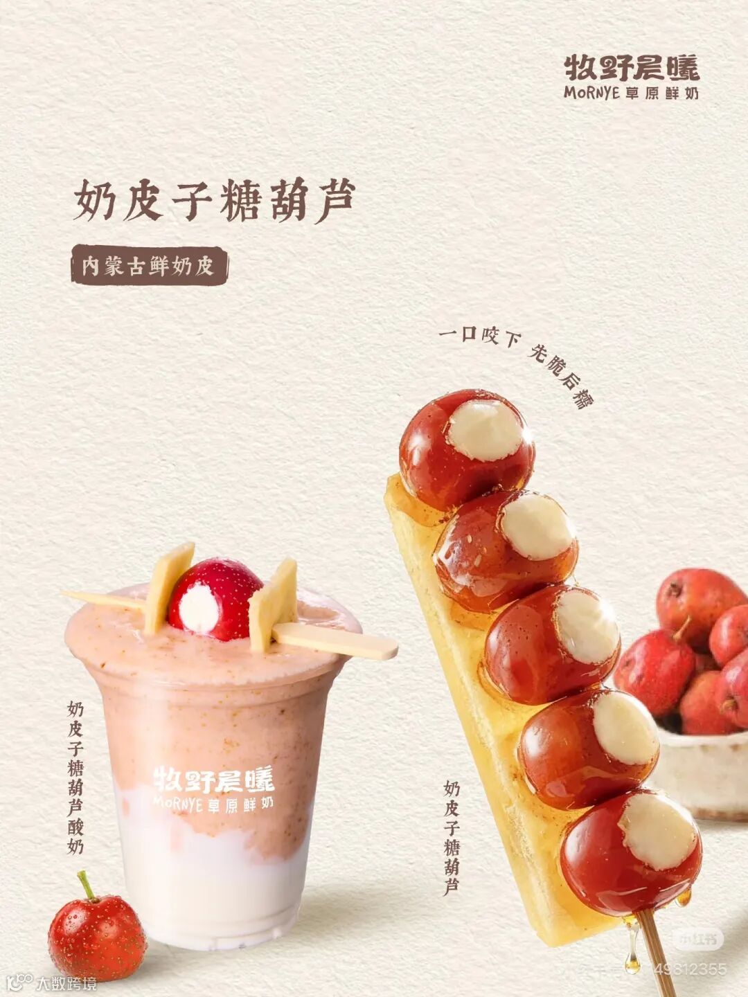 内蒙草原鲜奶品牌牧野晨曦也推出了奶皮子糖葫芦饮品。