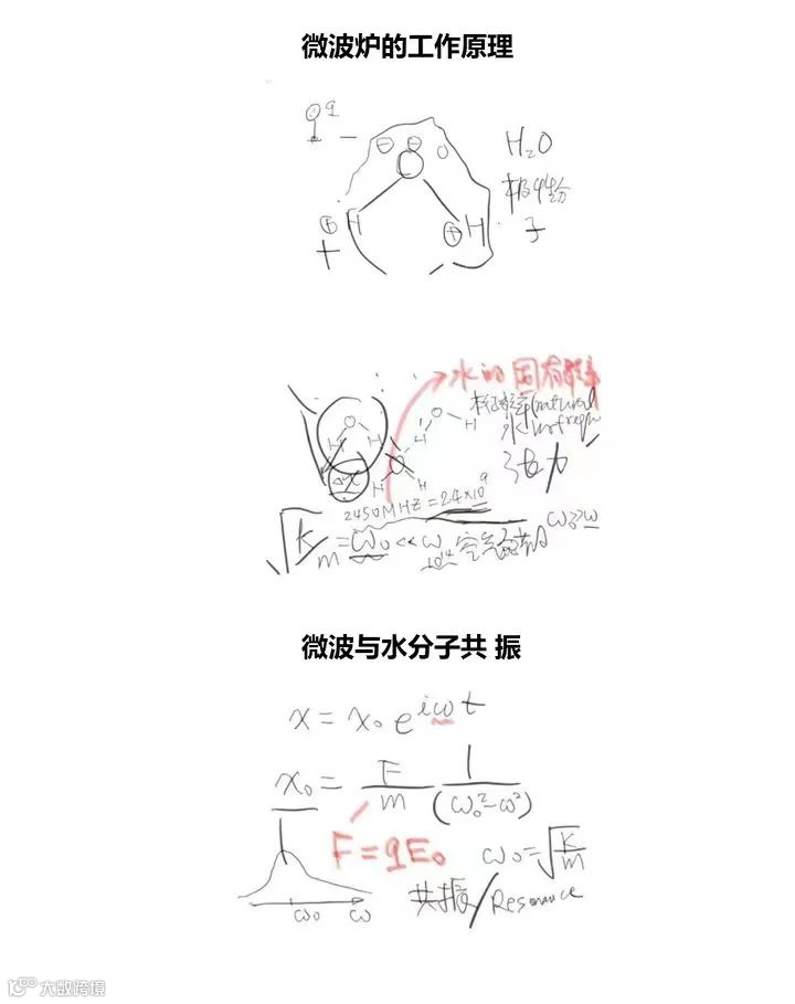 比如,你知道荡秋千和微波炉加热食物,背后用到的是同一种物理原理吗?张朝阳解释,秋千本身的频率是一定的,当外力作用的频率和秋千的频率相同时,就会越荡越高。微波炉加热食物也是同样道理,微波电场的转动频率与水分子频率一致时,水分子与电场出现共振,共振过程中,水分子振荡得越来越剧烈,能量越来越高,食物就热了。