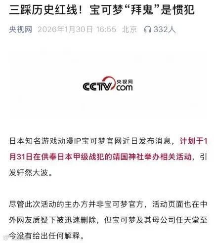 导语:“宝可梦道歉了”——短短五个字,在2026年1月30日冲上热搜榜首,阅读量破4.8亿。谁能想到,这只陪伴“90后”“00后”长大的电气鼠,竟因一场策划在靖国神社的儿童卡牌活动,成了众矢之的。