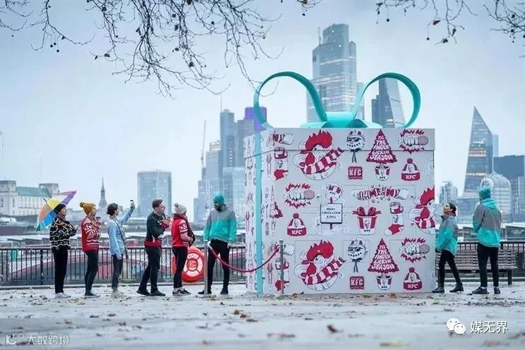 又是一年圣诞将至,肯德基与外卖速递公司Deliveroo发起了一场特别的户外营销。他们在伦敦南岸设置了一个10英尺高的礼品盒,盒中为肯德基的节日汉堡。
