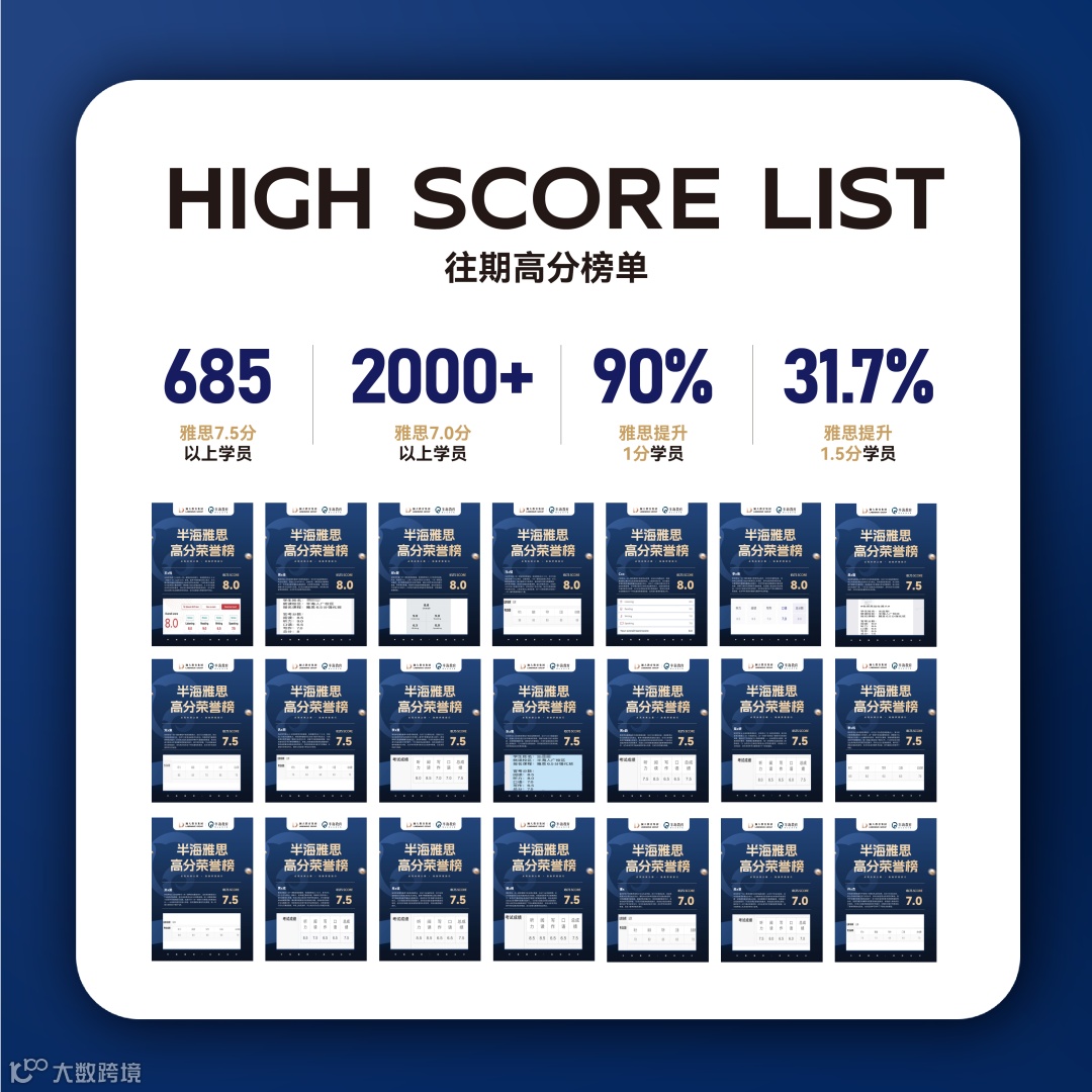 半海雅思高分荣誉榜(部分)