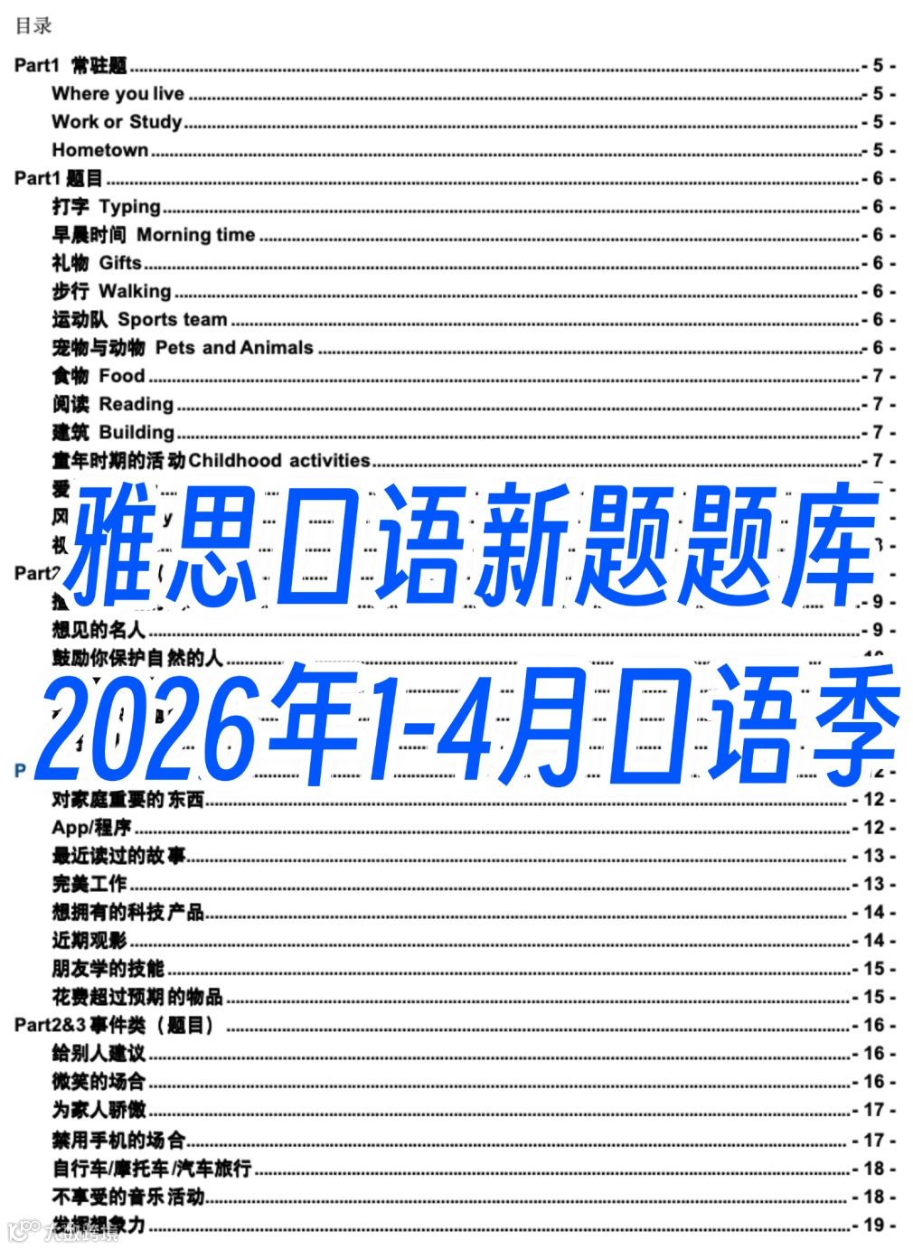 ✅ 《2026年1-4月雅思口语新题题库》