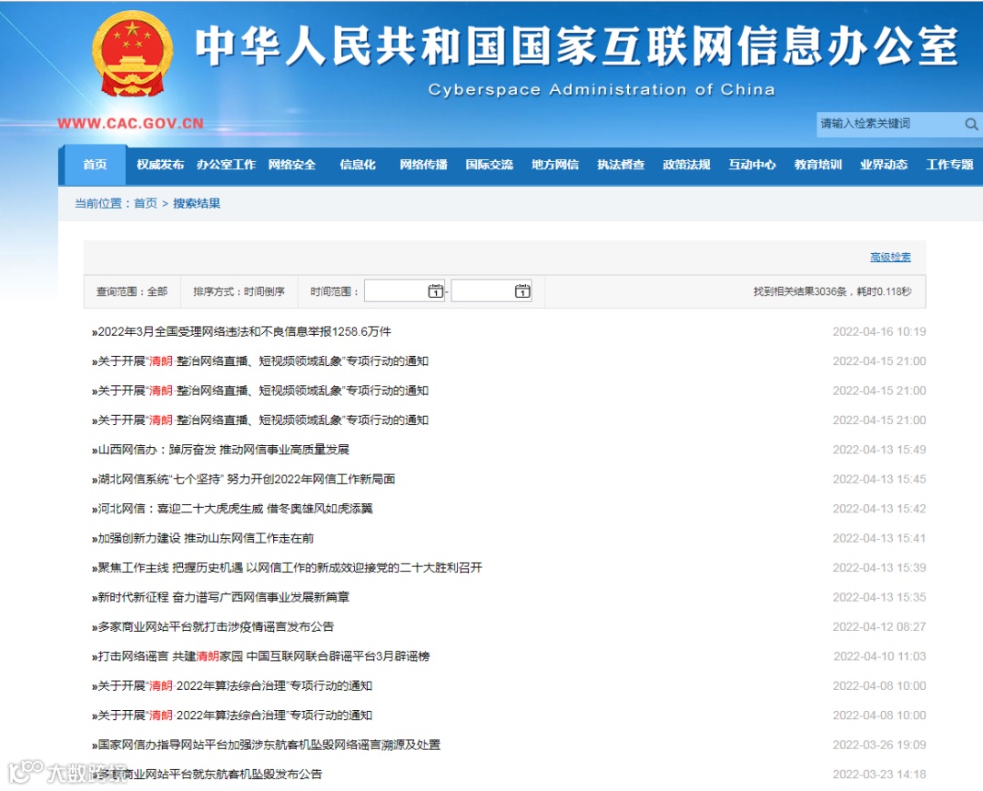 现在,“清朗”的一系列专项行动仍在进行中,4月15日正式开展“清朗·整治网络直播、短视频领域乱象”的专项行动。