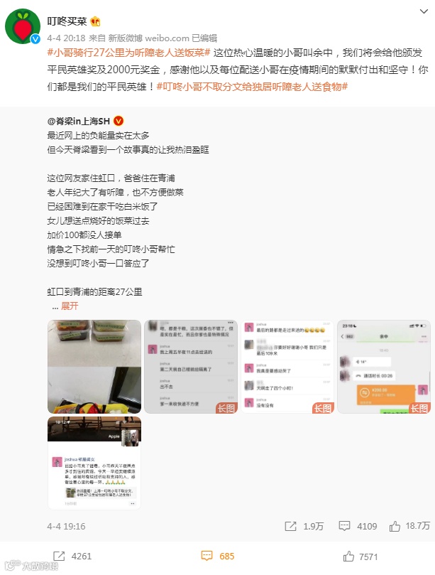 近日,上海一女子给跑腿小哥打赏200元,却因遭受网络暴力而跳楼身亡。事情的起因结果并不复杂,上海一女士求助跑腿小哥,给27公里之外的听障父亲送菜,在隔离管控期间,要做到这件事并不容易,女士想要打赏,小哥说什么都不接受,最后这位女士只好帮小哥充了200元话费。