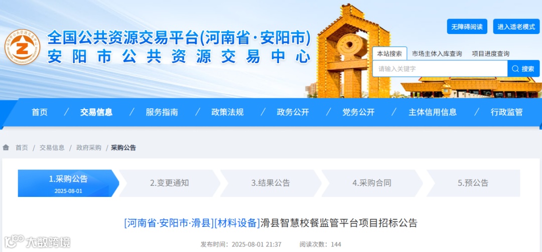 滑县智慧校餐监管平台项目招标公告