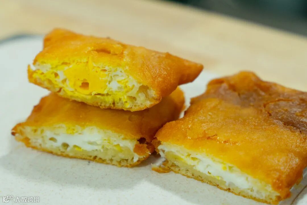 除了经典加鸡蛋,老餮还爱解锁隐藏吃法——夹馅儿!猪肉、韭菜、茴香、蒜黄……各种馅料塞进酥壳里,变成豪华升级版的“中式三明治”,风味十足。