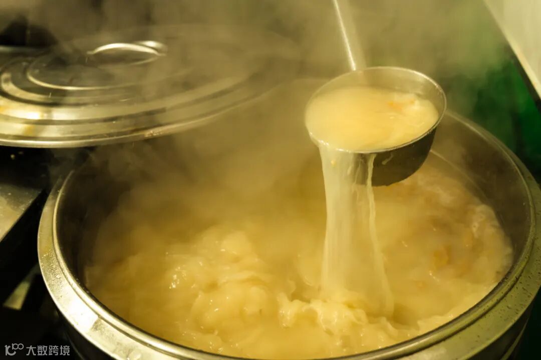 每天用新鲜羊骨,足足熬上八九个钟头,不放任何添加剂,硬是靠火候把汤熬成了奶白色,原汁原味。