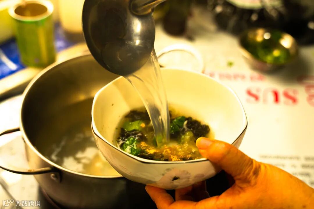 最后这碗粥,可不是普通的粥,它就是大名鼎鼎的 “威县拐沫”,是传承了千年的地方风味。用小米面调成糊,加入花生、黄豆、芝麻、红薯叶等十几种配料,文火慢熬而成。