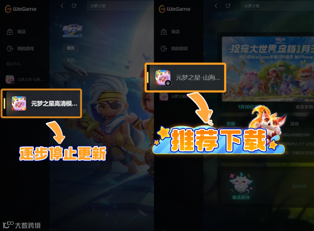 感谢大家一直以来对《元梦之星》的陪伴与热爱!为了给大家带来更优质的游戏内容与体验,我们将对WeGame客户端进行全面升级,并正式推出全新应用——《元梦之星-山海寻灵》。