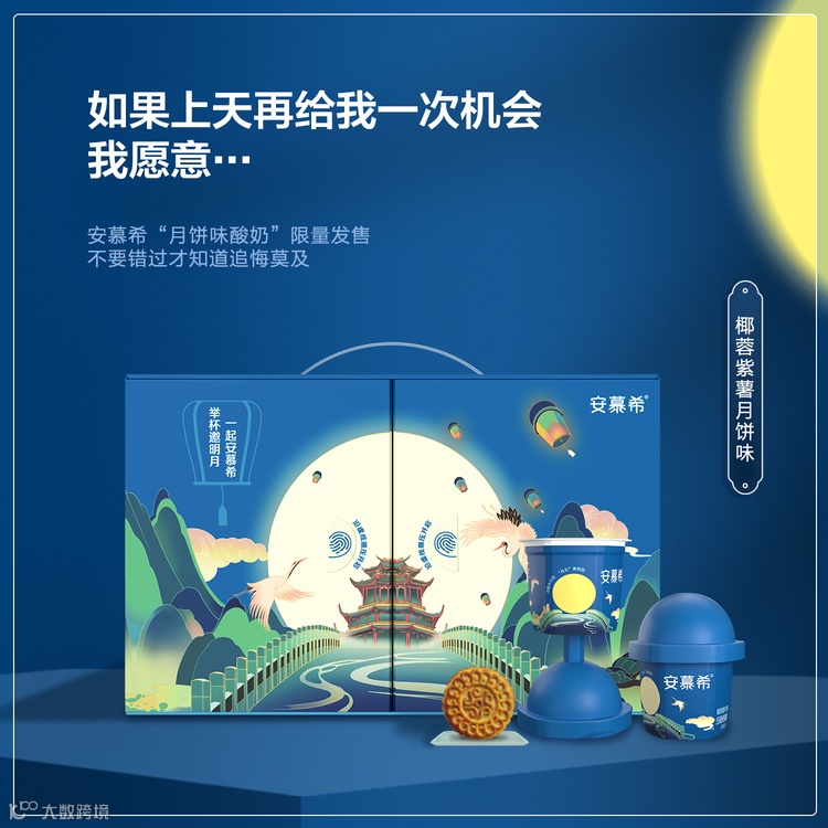 为了迎接中秋的到来,伊利携手旗下的安慕希特地打造了一款中秋限定礼盒“月光宝盒”,联合大众熟知的经典影视IP《大话西游之月光宝盒》,让人倍感亲切;以“捧一杯月亮回家”的活动主题,也分外契合中秋的节日氛围。