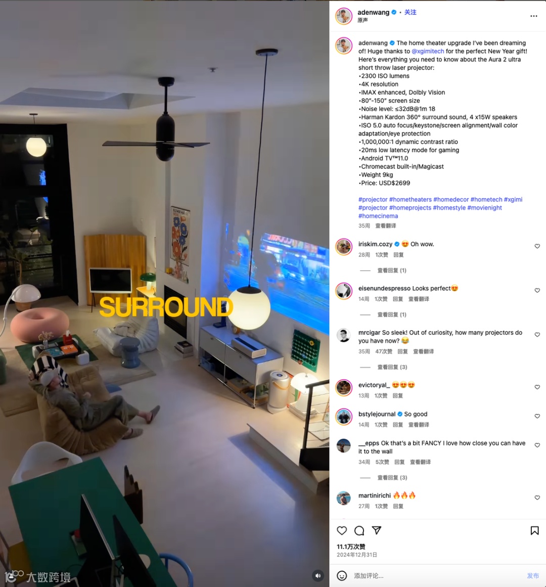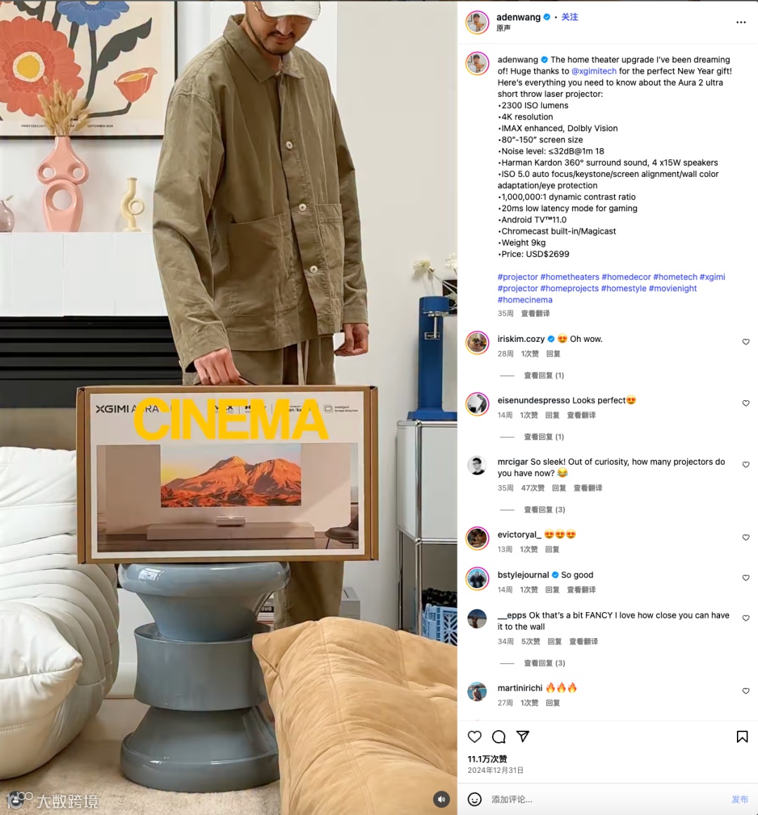 而且重心是放在Instagram上的,这是品牌最重视的平台,作为一个设计精致且面向年轻消费群体的品牌。Xgimi只能在这里触达并链接到数量最多、质量最好的目标客群。