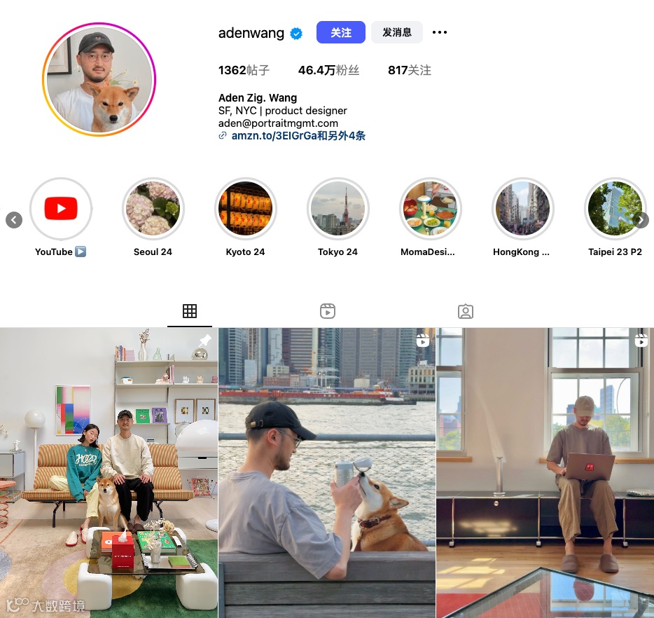 Aden Zig. Wang,一位生活在纽约的华裔产品设计师,同时也是一个家居博主。品味不错,装修好看,内容节奏也很舒缓,给人一种非常舒适的观感,目前拥有46.4万粉丝,是非常优质腰部红人。