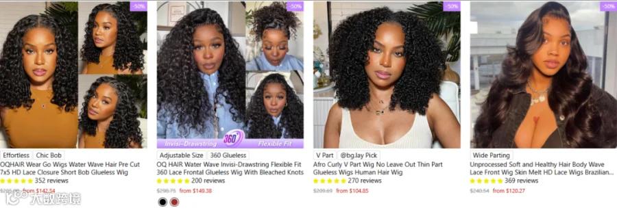 相关数据显示,OQ Hair在TikTok美区销量达48万件,累计销售额超3624万美金(约人民币2.6亿元),仅仅5个月,其销量赶上独立站,1年时间,OQ Hair登顶假发类目TOP1。
