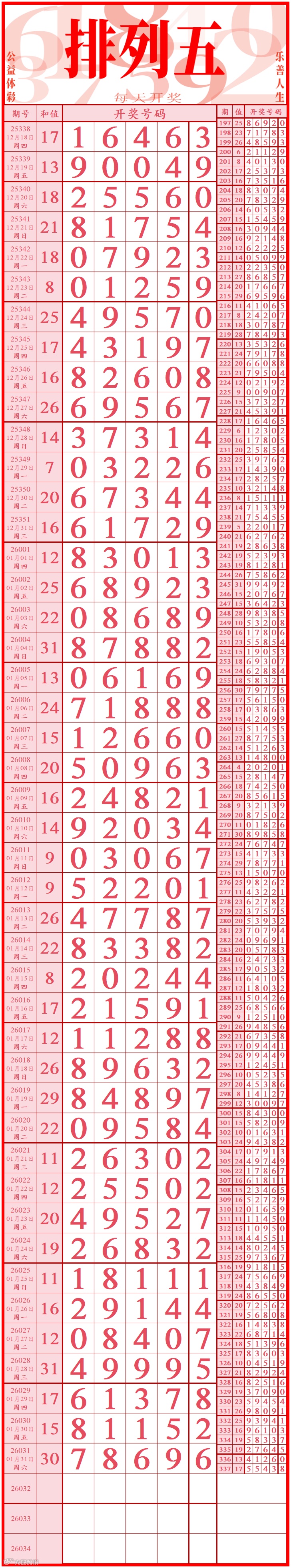 第26031期 排列五长条往期列表