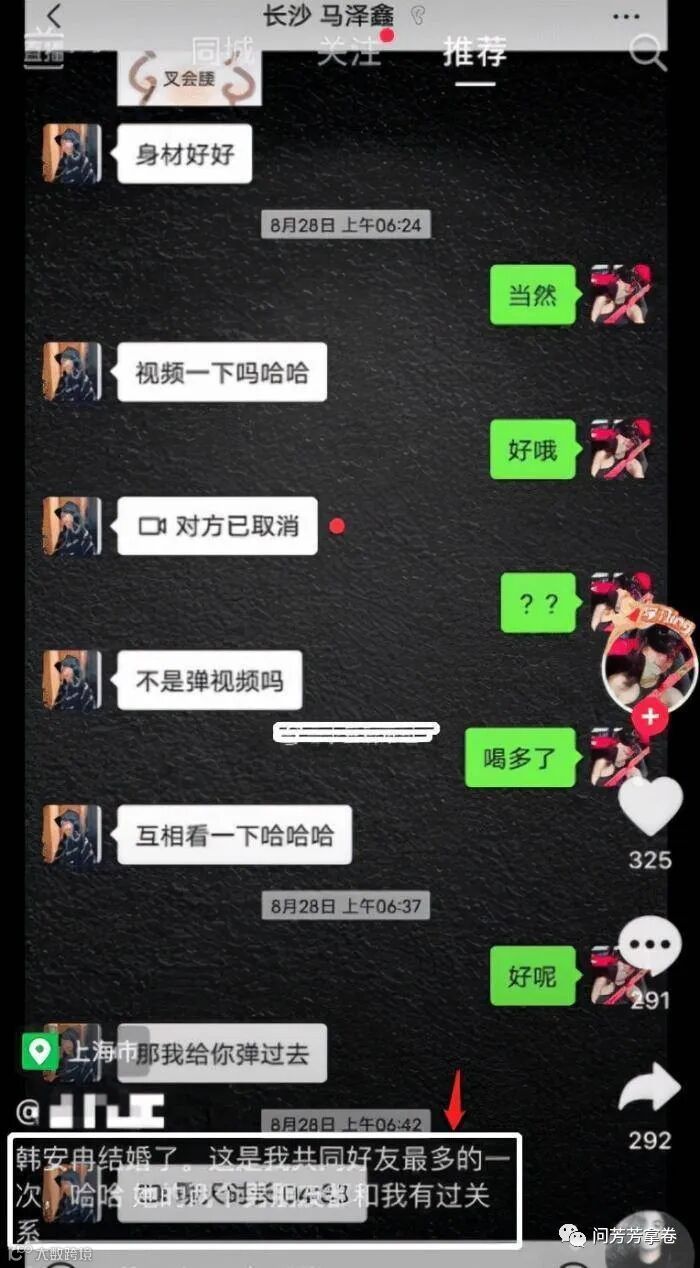 结婚不久后男方便被曝出是海王,与多名女性有关系且聊天内容不堪入目。不久后二人离婚,离婚原因竟然是韩安冉出轨了……