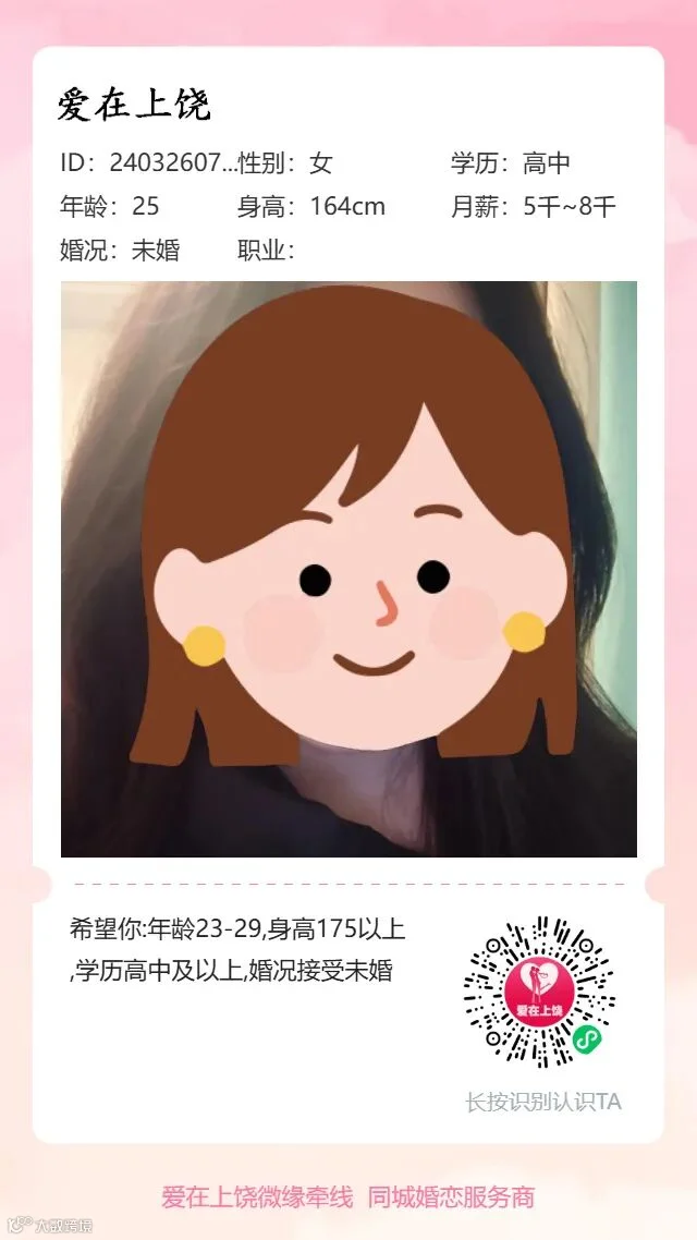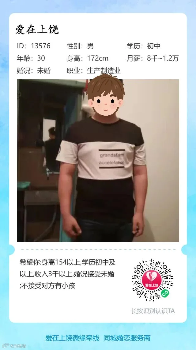 个人情况:铅山人,已购车,家有自建房,在浙江做不锈钢门窗生意,平时不抽烟不喝酒不赌博。爸爸在工地,妈妈做服装,妹妹上高中。