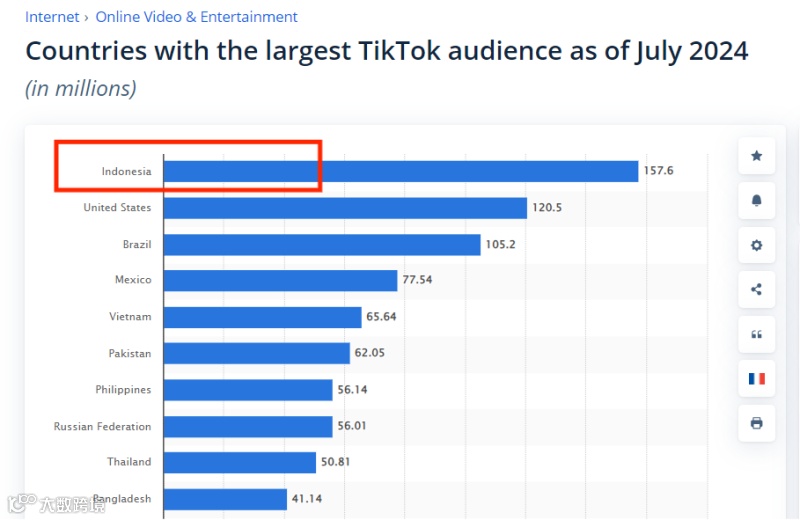 印尼市场新增下载量占TikTok全球新增总量的10%,远超美国市场的5%。Statista数据显示,截至2023年8月,TikTok在印尼的用户数量已达1.576亿,超越美国成为其全球最大用户市场。