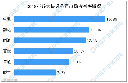 目前,“四通一达”占据中国快递市场份额前五位,共拿下了65%的市场。