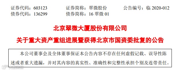 4月15日,海科融通发布重大资产重组进展公告,公告显示,翠微股份收购海科融通的计划已获北京市国资委批复。