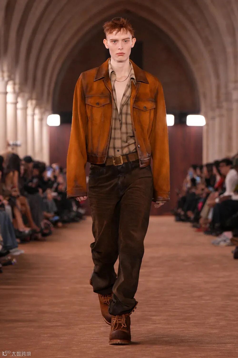 而如今裤装的审美似乎已经发生了一些位移,聚焦上一轮 Baggy 大潮中搅动风云的 ACNE 和如今已入主 GUCCI 的 Demna,前者张扬的数码印工艺完全从品牌 2026 春夏秀场中几乎消失殆尽,以更加内敛的工艺语言去描绘中性气质。同时秀场中的丹宁裤装比例仍然不低,但相比此前叱咤社交媒体的 Baggy 版型而言,做出了肉眼可见的收窄。
