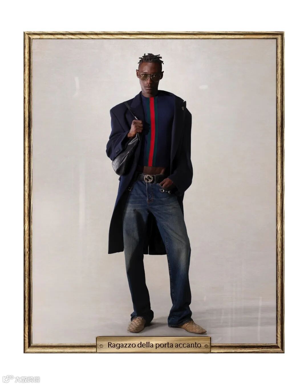 GUCCI 对于曾经 Demna 招牌裤装轮廓的摒弃则更加彻底。即便「La Famiglia」系列发布前外界便普遍猜测 Demna 会放弃「超大廓形」,转而着重于融入 Tom Ford 时代的美学印记,但在大廓形裤装上毫不拖泥带水的切割也还是让大多数人感到惊讶。