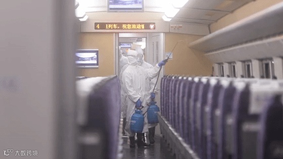 3车厢3D号座位是位疑似病患坐过的,工作人员对该车厢以及相邻车厢的消杀得更加细致,进行多次消毒,彻底消灭列车上存在的病毒。