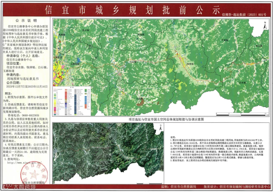 2023年12月7日,国道G359线信宜合水至旺同段改建工程用地预审与选址意见书批前公示。