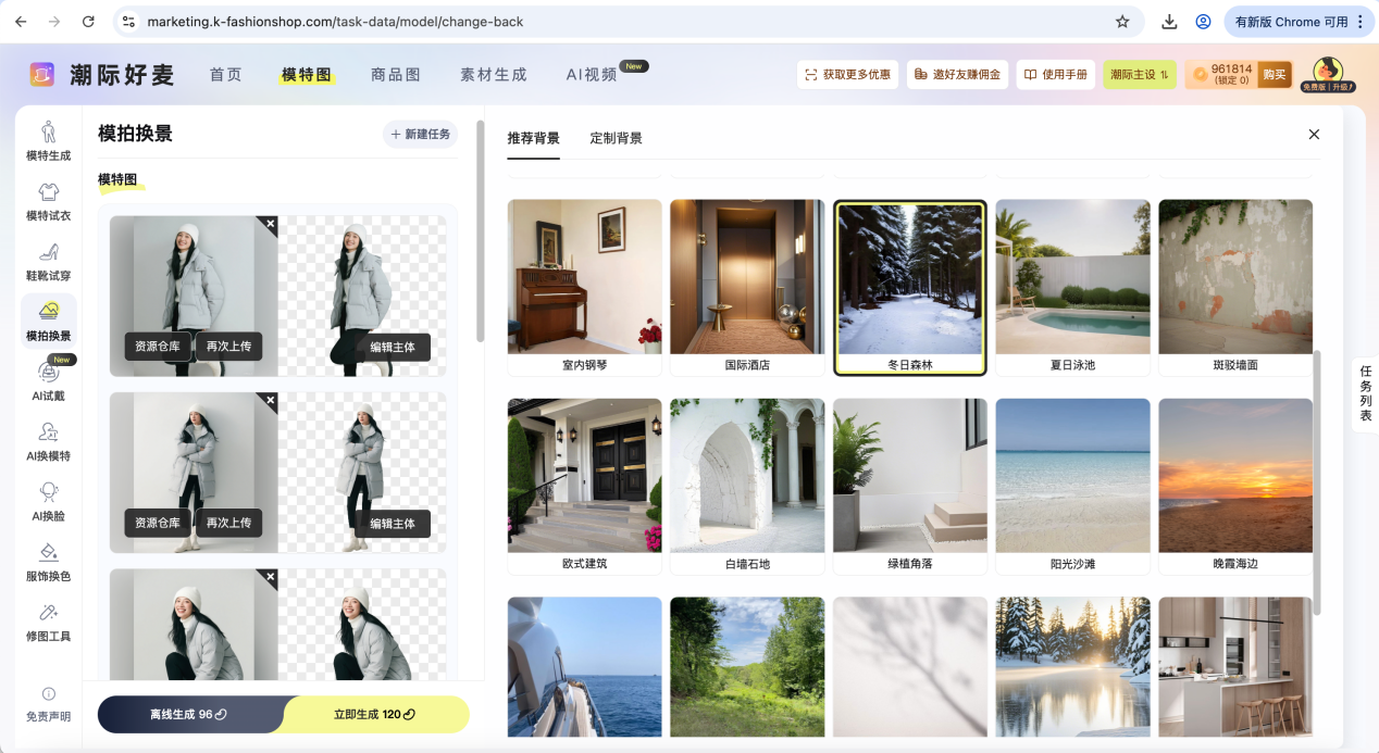 潮际好麦的场景化定制功能特别适合跨境电商商家。它能生成各种风格的背景,比如做欧美市场时,可将背景换成时尚街头、欧式客厅;做日韩市场时,换成简约便利店、和风庭院,让商品更贴合当地消费者的审美。
