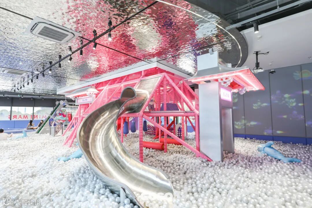 专为低龄儿童设计的粉色滑梯区,搭配海洋球泡泡机,让孩子在趣味中锻炼胆量与协调能力。