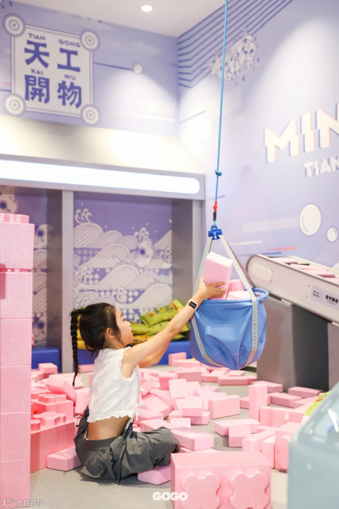 通过配备免费鞋套与储物柜的换鞋区后,正式踏入这座融合科技与神话的“山海星”世界。摇曳花束随孩子到来绽放,1楼与2楼分布着40余项互动项目,等待小探险家们逐一解锁。