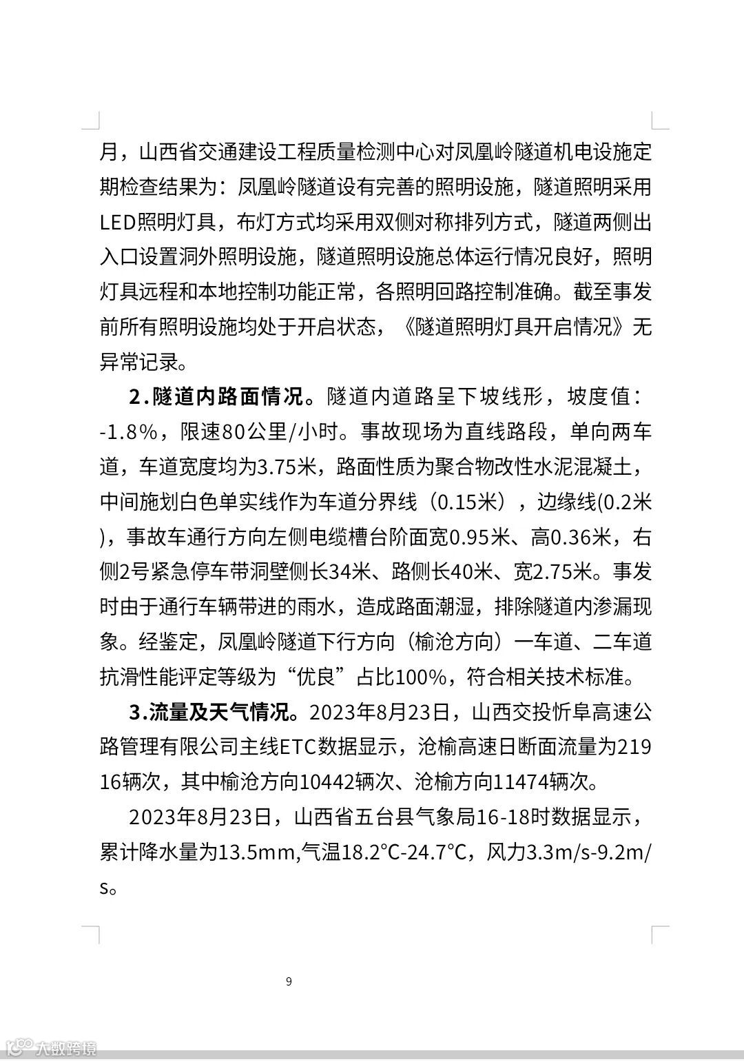 沧渝高速山西忻州“8·23”较大道路交通事故调查报告