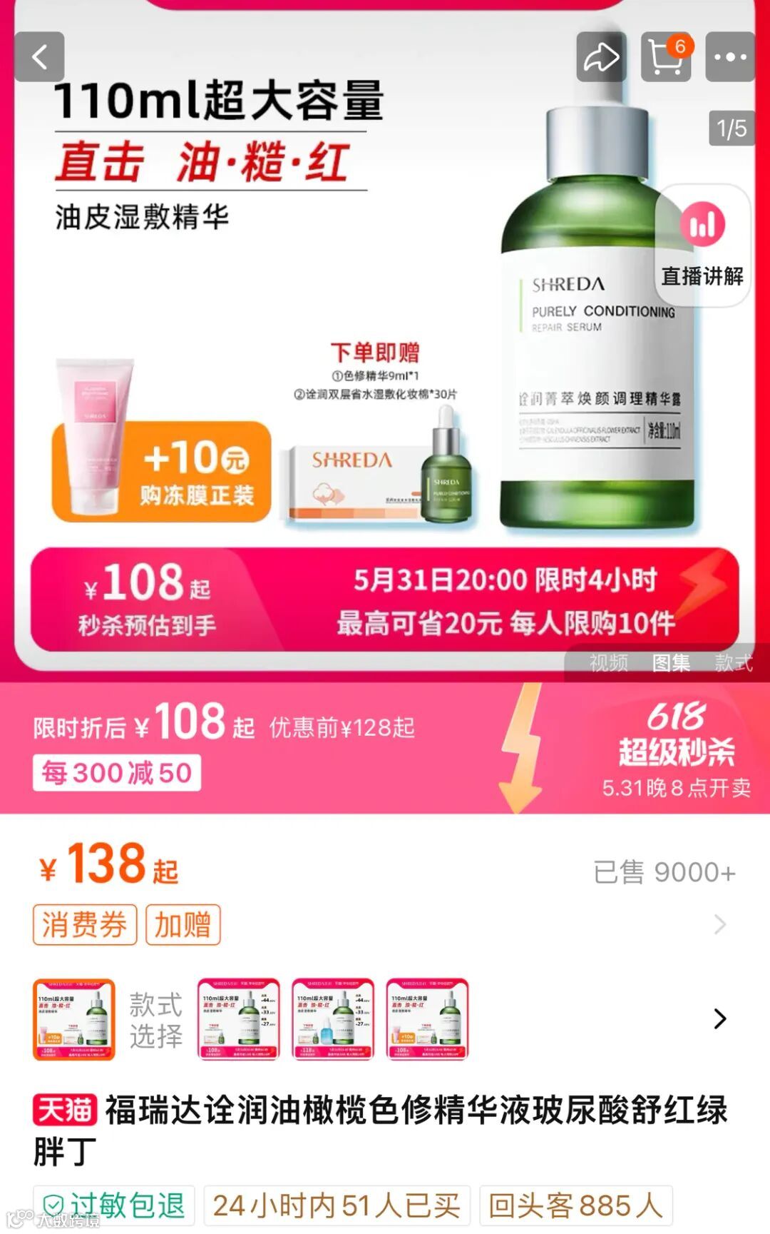 两款配方成熟、效果稳定的维A精华,价格亲民,部分直播间或有额外折扣。