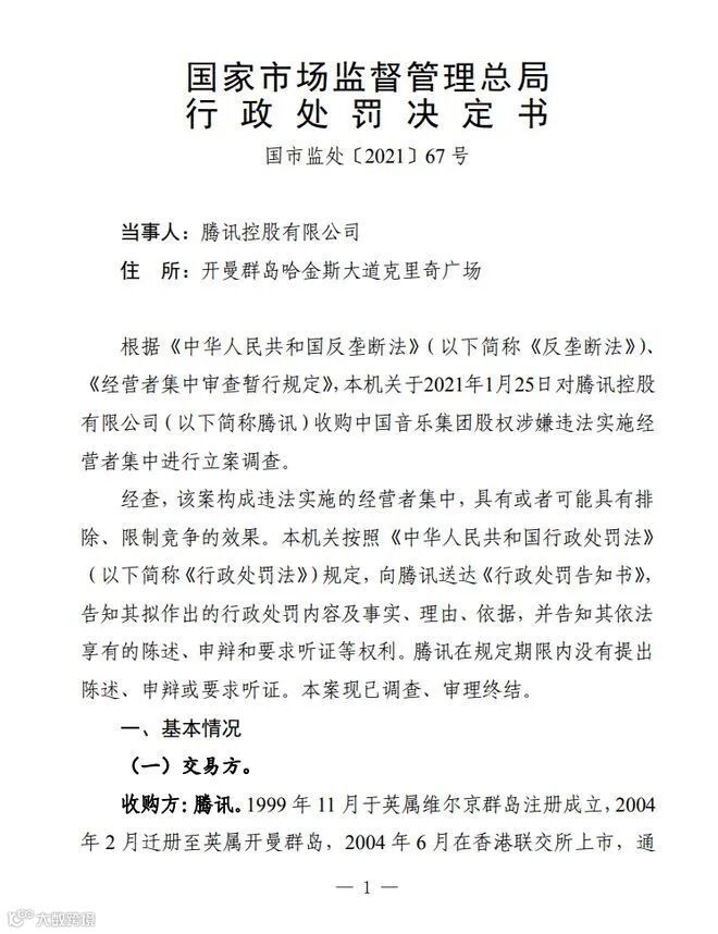 2021年因涉嫌垄断被国家市场监管总局处罚,责令解除独家版权,恢复市场竞争。网易云音乐借此重启版权合作,播放列表逐步恢复。