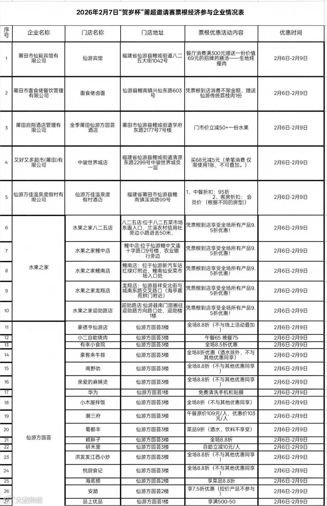 具体商户列表如下!