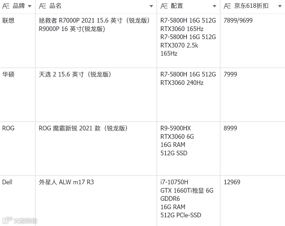基于上述价格区间,汇总当前值得关注的主流机型,涵盖办公、设计、游戏等多场景需求,供消费者参考。