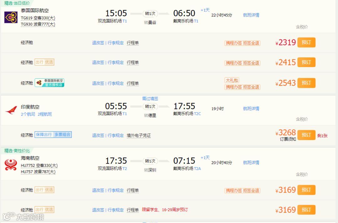 本来我想对比一下其他平台是多少钱,但好像没有平台支持这么多程的机票查询,所以暂且作罢。